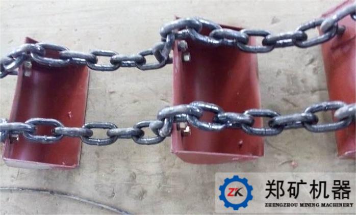 環(huán)鏈?zhǔn)禽^常用的一種牽引件,它的結(jié)構(gòu)和制造比較簡單,與料料的鏈接也很牢固。但環(huán)鏈相互接觸處易磨損,降低鏈的強度,且運行不夠平穩(wěn)。