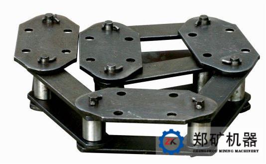 滾子鏈條的結(jié)構(gòu)比較堅固,適用于提升量大的提升機(jī)。但其鉸接頭處易受物料磨損,制造維修比較復(fù)雜。